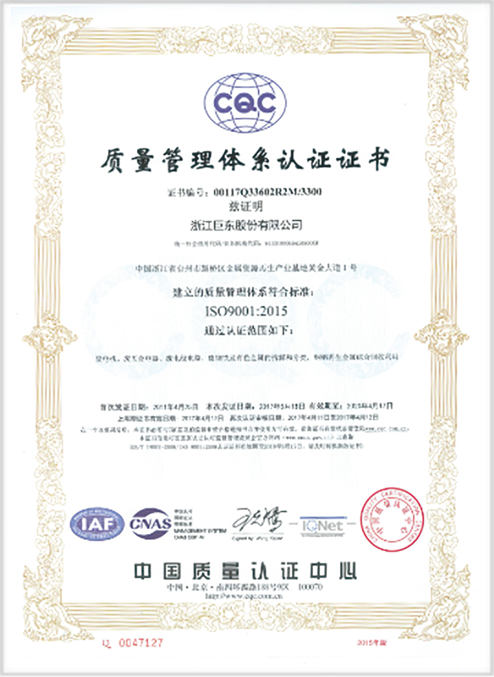 • 2017年5月取得ISO9001認證