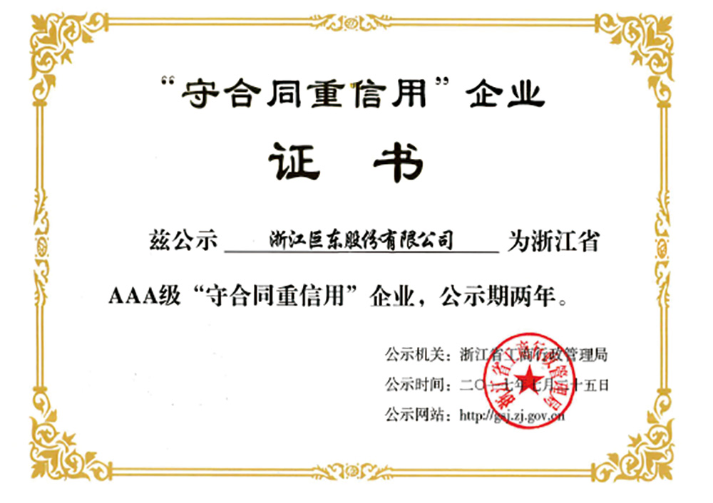 • 2017年浙江省AAA級守合同重信用企業(yè)
