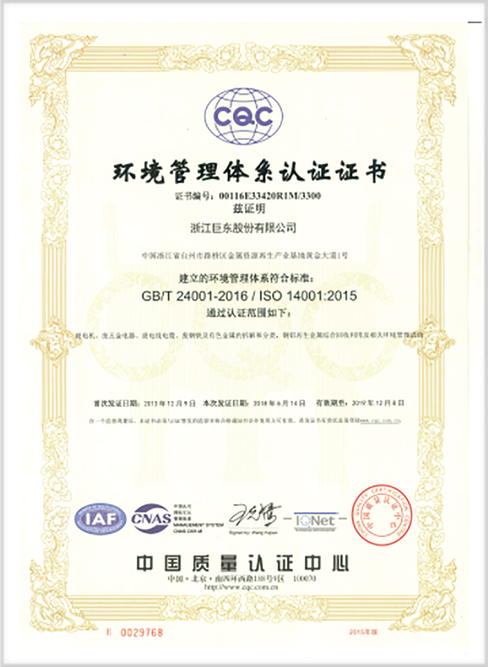 • 2018年6月取得ISO14001認證