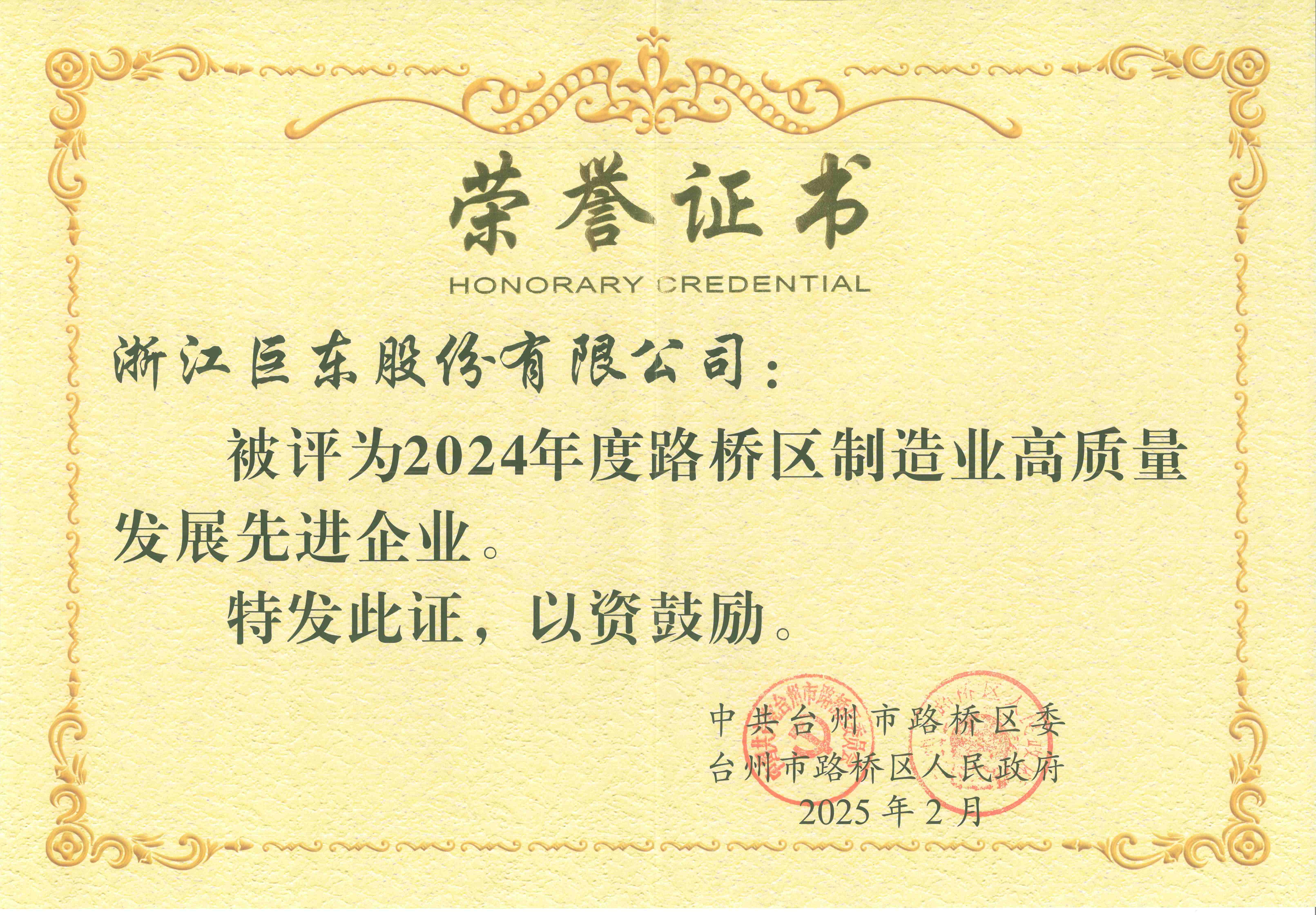 • 2024年度路橋區(qū)制造業(yè)高質(zhì)量發(fā)展先進企業(yè)